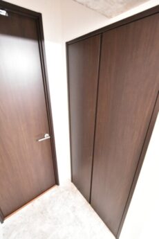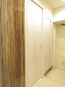 収納の向かい側は洗面室の扉があります。