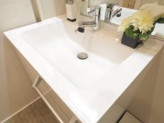 洗面台はシャンプードレッサータイプでボウルが大きく三面鏡裏収納などもあります。