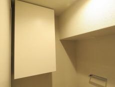 洗濯機置場上部は吊戸棚付。これが付いているのといないのとでは、便利度が全然違いますよ!