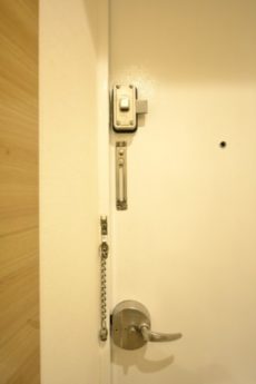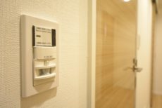 このようなレトロな玄関扉でもインターホンはモニター付き。ダブルロックでない玄関扉であっても、モニター付きインターホンがあれば、見知らぬ来訪者は事前にシャットアウトできますね。