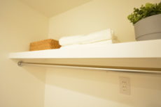 日用品のストックなどを仕舞っておくのによさそうですね。棚の高さは調節できます。