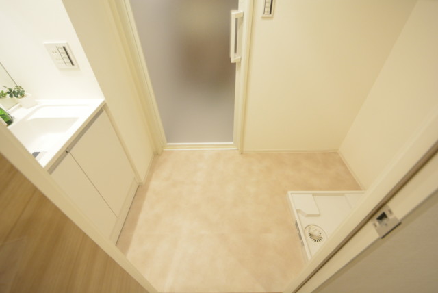 バスルームは洗濯機置場横に扉があり、脱いだ衣類を洗濯機に入れやすいです。