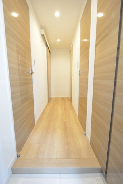 玄関を上がり廊下には引き戸で仕切られたサニタリールーム。