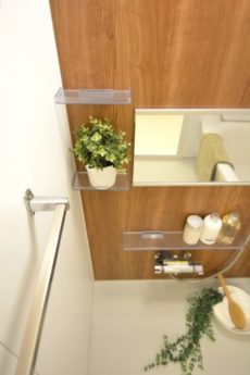 鏡の裏、吊戸棚など収納スペースも豊富です。