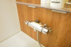 浴室は大理石調のパネルがアクセントになっています。