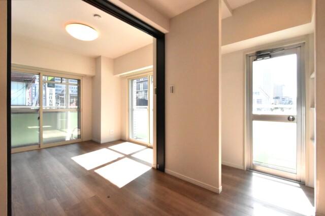 バルコニーにはすべての居室から出入り可能です。窓にはインナーサッシが設置されていて、防音や省エネ、結露防止効果が期待できます。