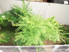 2階ですので、マンション敷地の植栽がわっしわっしと元気良く茂っているのが、