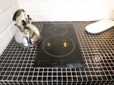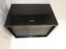 細部も手抜かりなし。コンロはIHです。レンジフードに至るまでブラックで角ばって