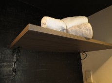 洗濯機置き場上部の棚板の留め具までデザインにこだわってます。