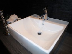 バスルーム。デザインにこだわりながらも、文明の利器・浴室換気乾燥機が