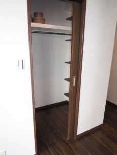 ウォークインクローゼット内部にはポールと棚が設置されており、結構なんでも