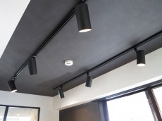 渋い艶なしブラックのクロスや(天井までがっつりブラック)ブラックタイルの