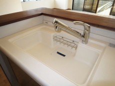 使い勝手良さそうなカウンターキッチン。シンクの水栓は浄水器一体型です