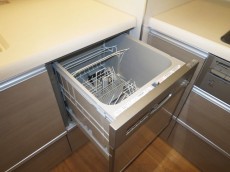 ない、美しいホワイト。水栓は浄水器一体型です。ビルトインの食器洗浄機も