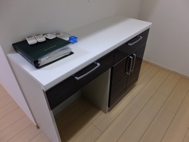 キッチンスペースはメインのキッチン台の他に、棚兼作業台がありました。