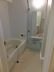 バスルームは水色のパネルでこれまたかわいい感じです☆