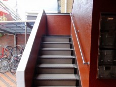 駐輪場はエントランスの目の前にあります。上階へは外階段で上がるようですね☆