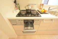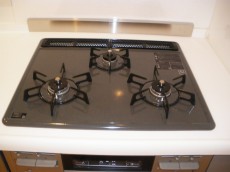 コンロは3口、片面焼きグリルも付いています。コンロが三つもあると多少手の込んだお料理に挑戦してみようかな・・・とか思ったりしませんか(^^)