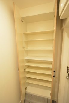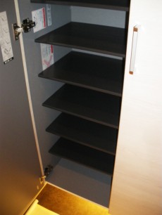 シューズボックスは上下に分かれて二つありました。上は少し出し入れしがしづらいので、あまり使わない靴などいれておくと良いかもしれません。
