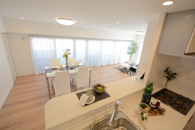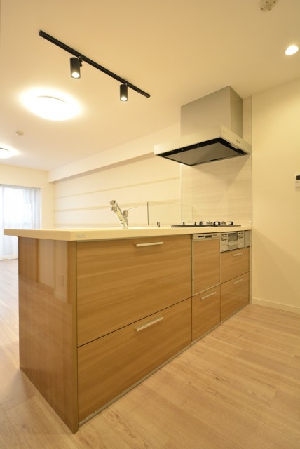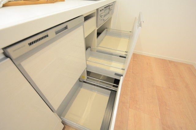 キッチンは浄水器一体型水栓、食器洗浄機、3口コンロと機能が充実しています。