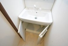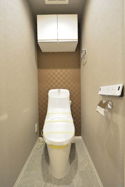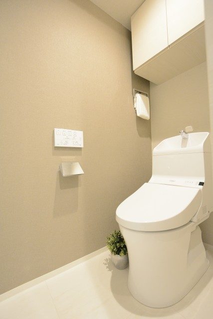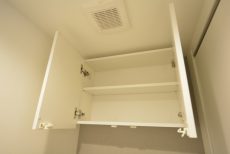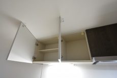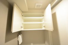吊戸棚が付いているので、トイレットペーパー等の消耗品やお掃除グッズなどもこちらに収納することが出来ますよ。