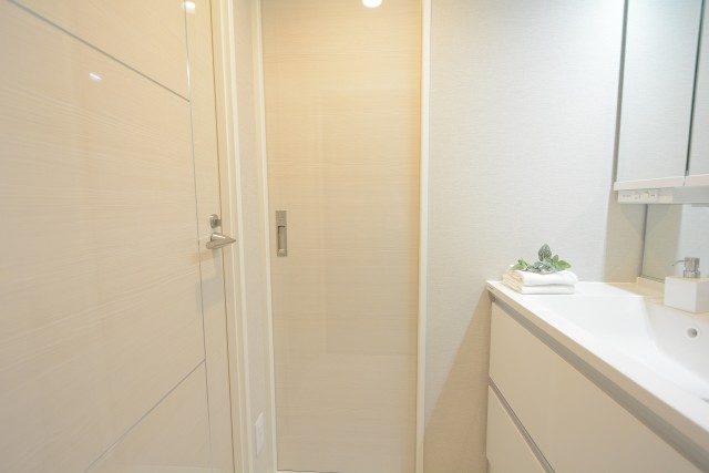 洗面室は脱衣所も兼ねているので、脱いだ服はどんどん洗濯機に放り込んでいきましょう。