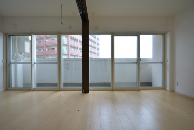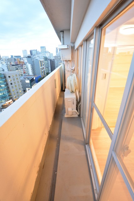 奥行きはあまりありませんが、二部屋にまたがる幅のあるバルコニーです。