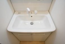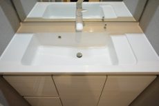 洗面室もホワイトカラーがベース。爽やかで清潔な印象です。洗面ボウルが広いので、
