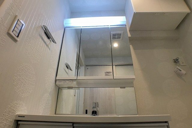 洗面台には4枚のミラーが付いているので視認性も抜群です。