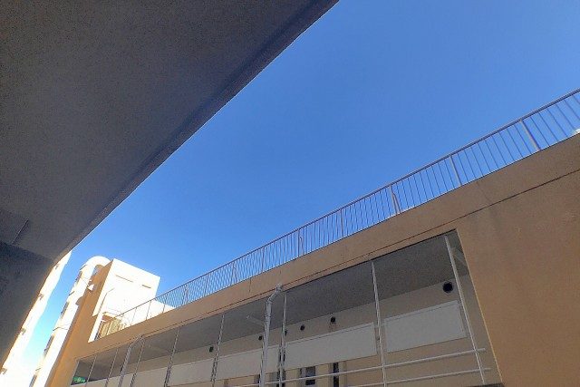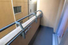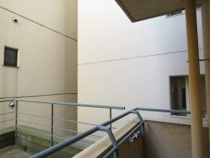 エレベーターを降りると開放的な外廊下。すごく開放的なので、すごーく高いところが苦手な方には少し怖いかも。