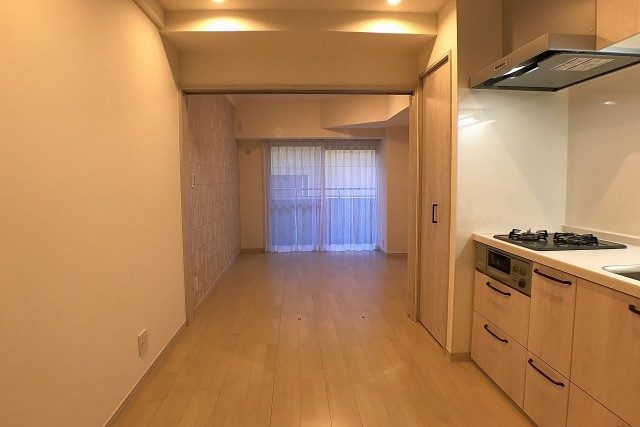 2部屋ある洋室はリビングダイニングキッチンを介していけるようになっています。まずは3枚の可動扉側の洋室を見ていきましょう。