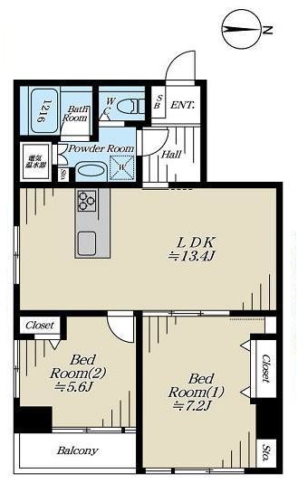 リビングダイニングキッチンは約13.4帖の横長空間です。