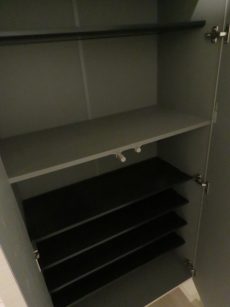 中の棚は高さの調節ができるので、ブーツなどの背の高い履物でも問題なく収納することが出来ますヽ(´∀`)