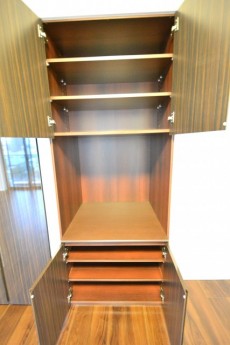 右側のカウンター上下は収納棚、左側はクローゼットになっているので、洋服だけでなく、色々な物を収納できてとても便利です♪