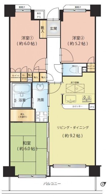 リビングダイニングと和室に面したバルコニーは9.32帖と広々しています。