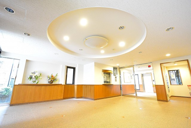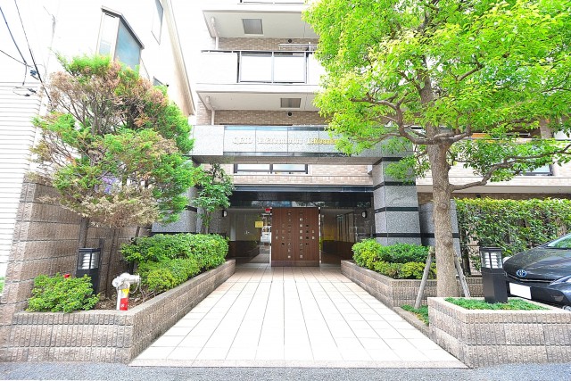 オートロックをくぐり、エレベーターホール横のドアを進みます。