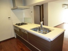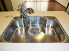 キッチンは開放感のある対面式。収納スペースも上下にあります。シンク下のスペースに大きなお鍋やフライパンなどすっぽり仕舞っておけるハズ。