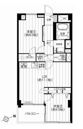 今回ご紹介するお部屋は6階、間取りは2LDK、専有面積は53.46㎡。おひとり暮らしやDINKSの方にお勧めのお部屋です。