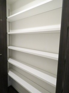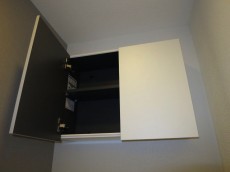 入り口にはリネン庫が設けてあるので、バスタオルや洗剤、シャンプーの買い置き
