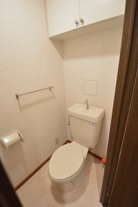 トイレも洗浄機能はリモコンタイプになり、上部には吊戸棚式の収納が入っています!