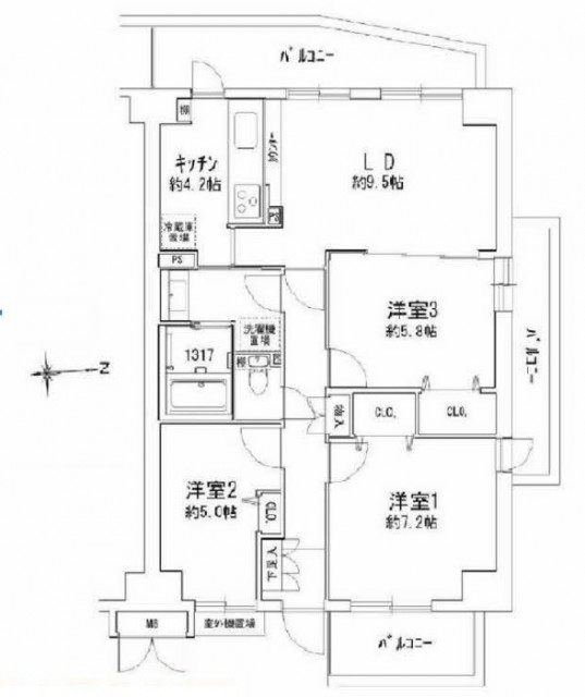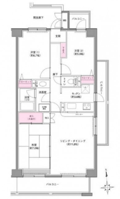 3LDK 専有面積:70.37㎡ バルコニー面積:17.39㎡