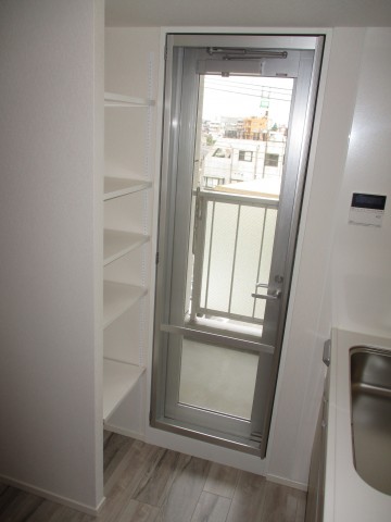 奥にはバルコニーへでれる網戸付きの窓もあるので自然換気もバッチリできます。