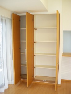 棚板が外せるので、掃除機をしまうのにいいかもです。