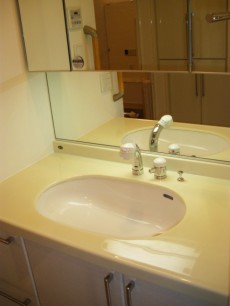 ゆったりした広さの洗面室。化粧台もワイドです。三面鏡(曇り止めヒーター付☆