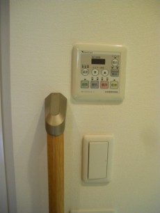 バスルーム入り口、浴乾パネル横に手すりが設置されていました。優しさ、ですね。