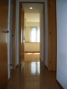 廊下の突き当りがリビングダイニング。廊下にも奥行きある収納が設けられています。