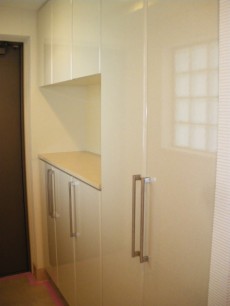 クロスが貼ってあります。収納たっぷりなところも素晴らしい。