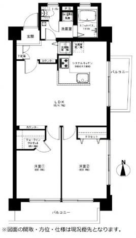 南向き角部屋2面採光・2面バルコニーのお部屋で通りと反対側を向いているので、