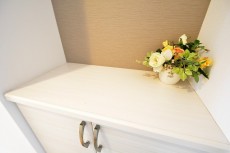 カウンタータイプのシューズBOXでオブジェのディプレイや小物入れなどを置くことができます。