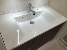 化粧台のボウルも継ぎ目がなく、美しさと手入れのしやすさを兼ね備えています。